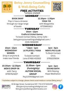 Thank you for looking at our website-Betsy Jenny Counselling and Wellbeing Café C.I.C. Betsy Jenny Wellbeing cafe is a vibrant and welcoming wellbeing cafe in the heart of Sunderland City Centre where everyone is welcome, explore our website to learn more about us!
